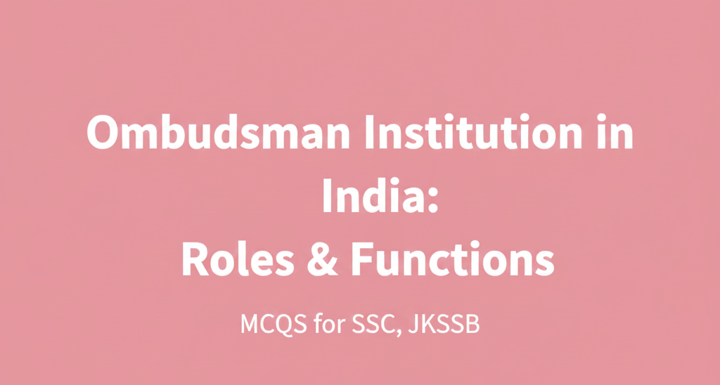 Ombudsman Institution in India: Roles & Functions MCQs for SSC, JKSSB